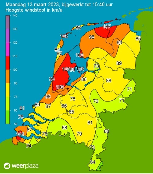 DE MAXIMALE WINDSTOOT BEDROEG 108 KM/U IN BERKHOUT.