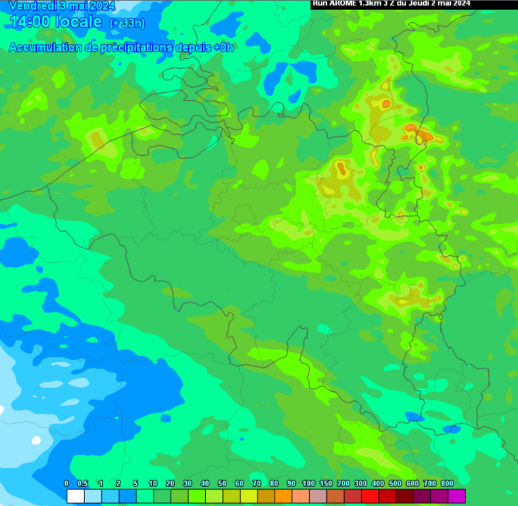 De buien ontstaan diep in Frankrijk, en het zal nog maar de vraag zijn of er nog wat van over is boven België en Zuid-Limburg.