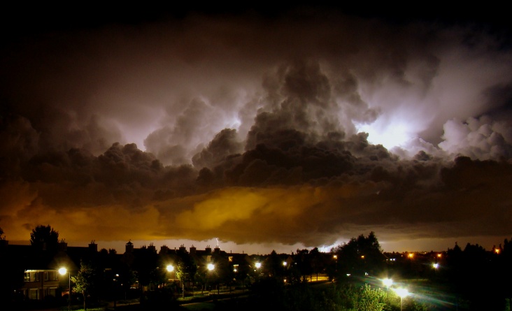 Bij die bui van vannacht dacht ik dat die net na ons was ontstaan, maar dit kwam omdat ik er middenin wakker werd zegmaar.