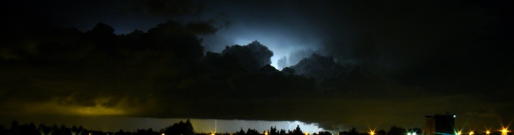 Wel leuk, want had het totaal niet verwacht eigenlijk. Vanochtend om 06.45 werd ik weer wakker, en wat dnek je, weer onweer. Het was al redelijk licht, maar aan de huizen waar ik op kijk kon je zien dat aan de andere kant van het huis een enorme donkere lucht moest hangen. En dat klopte ook, zeer donkere lucht en zo nu en dan flitsen. Kwam maar langzaam dichterbij, en uiteindelijk waren er wel een aantal rake klappen. Maar die bui van vanochtend is niet pal over ons heen geweest helaas.